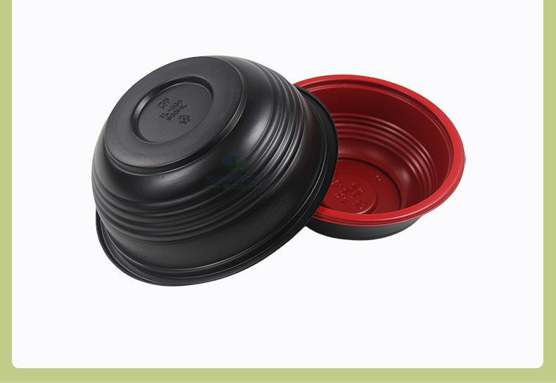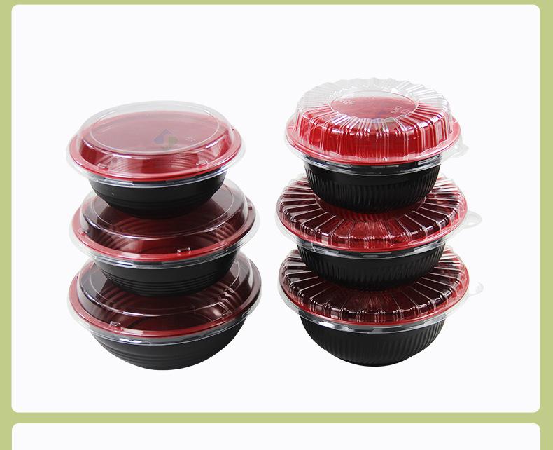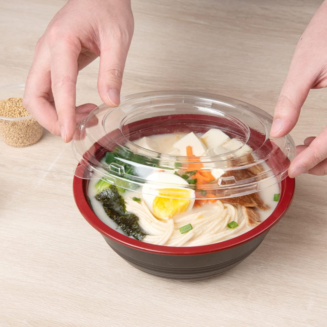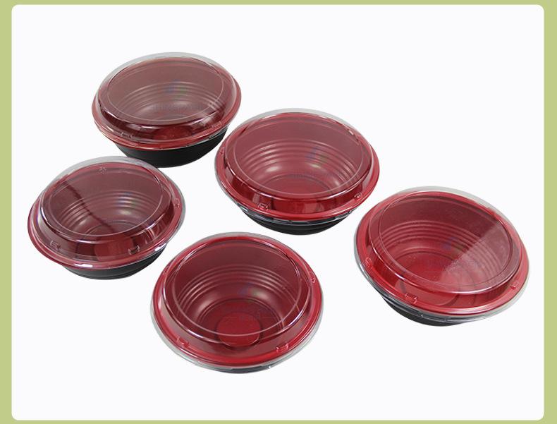 OWENTEK Disposable Plastic Lunch Box,Food Containers Salad Bowls - Lids Included, Microwavable, Black And Red Plastic To Go Bowls, Asian Inspired, Perfect For Picnics Party Restaurante