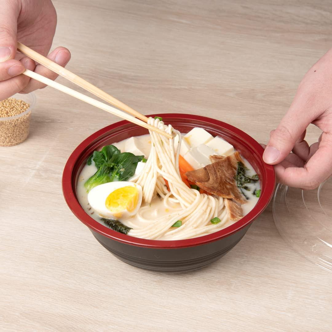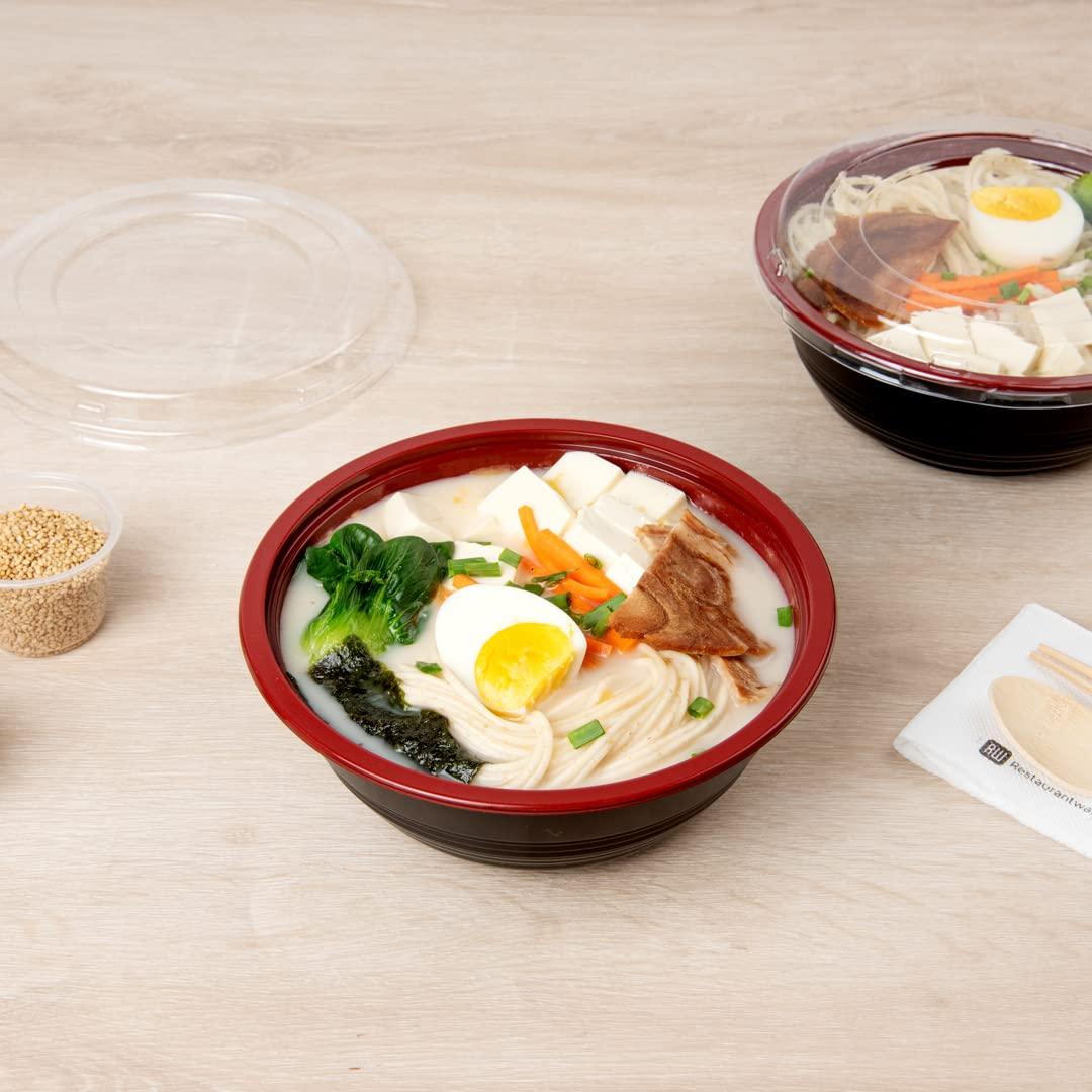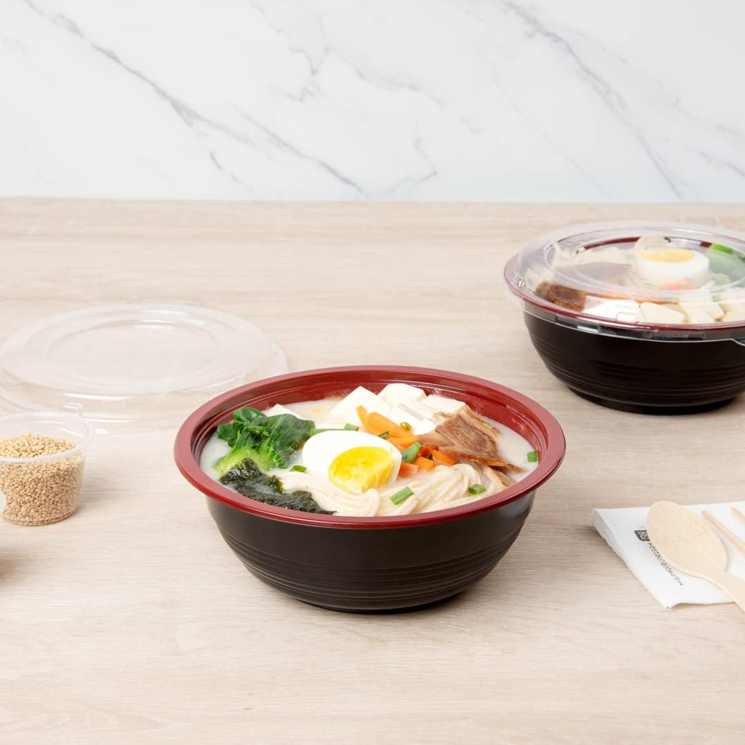 With a chic round design, these disposable bowls sport a black exterior with a red interior to instantly add an Asian-inspired flair to food presentation. Serve in style!
