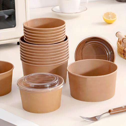 Safe and healthy kraft paper buckets are ideal for holding leftovers, soups, salads, pies, cakes and sandwiches. It can also be an ideal container for ice cream desserts and soups
