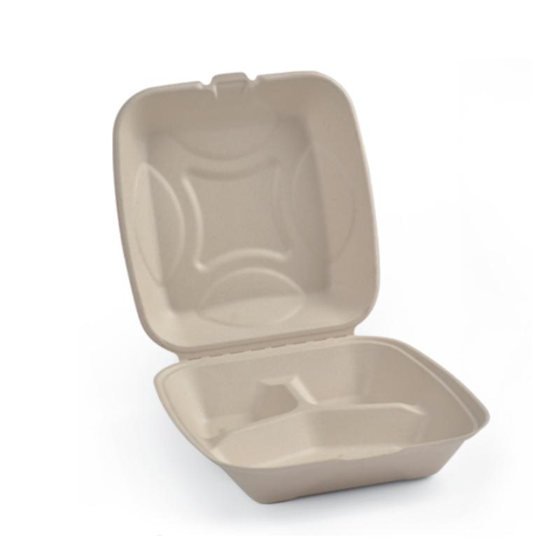 Eco-Friendly Compostable Meal Prep Containers Disposable Lunch Boxes Kraft Clamshell Bagasse Material