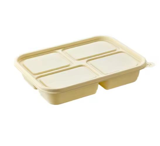 OWENTEK Corn Starch Bento Lunch Box 23.9x17.8x4.4cm Disposable Restaurant Container Eco-Friendly Biodegradable Cornstarch Bento Boxes - 4-Compartment Takeaway Food Containers for Party Restaurant