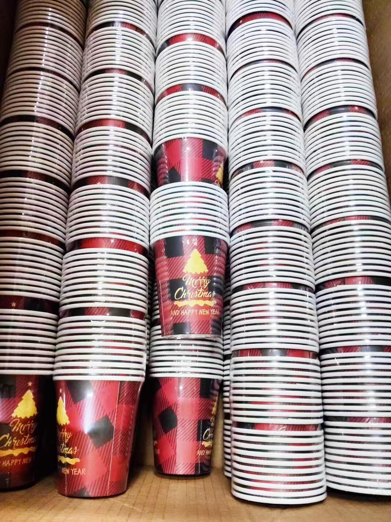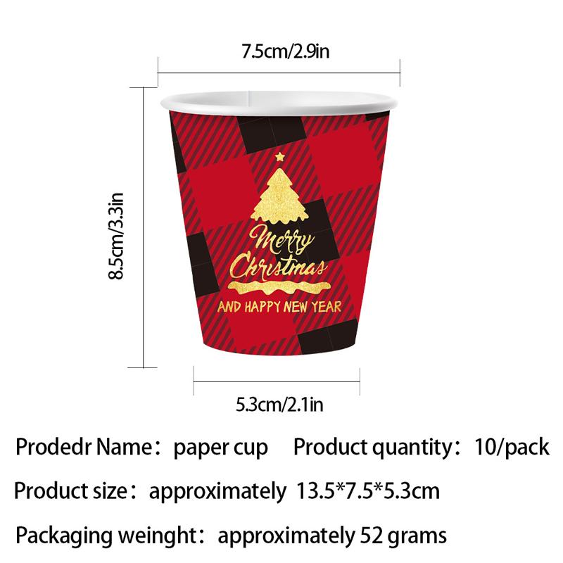 Christmas Red Plaid Disposable Paper Cups Golden Christmas Tree Logo Holiday Party Coffee Cups Adult & Kid Universal Party Supplies