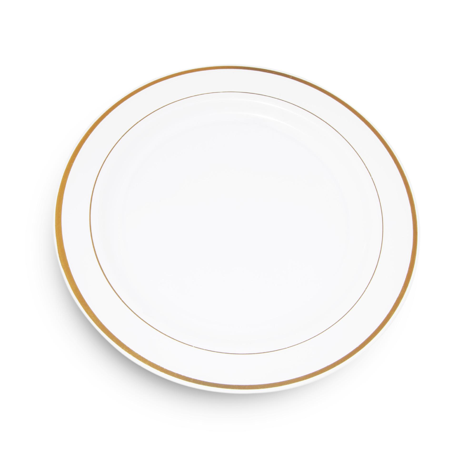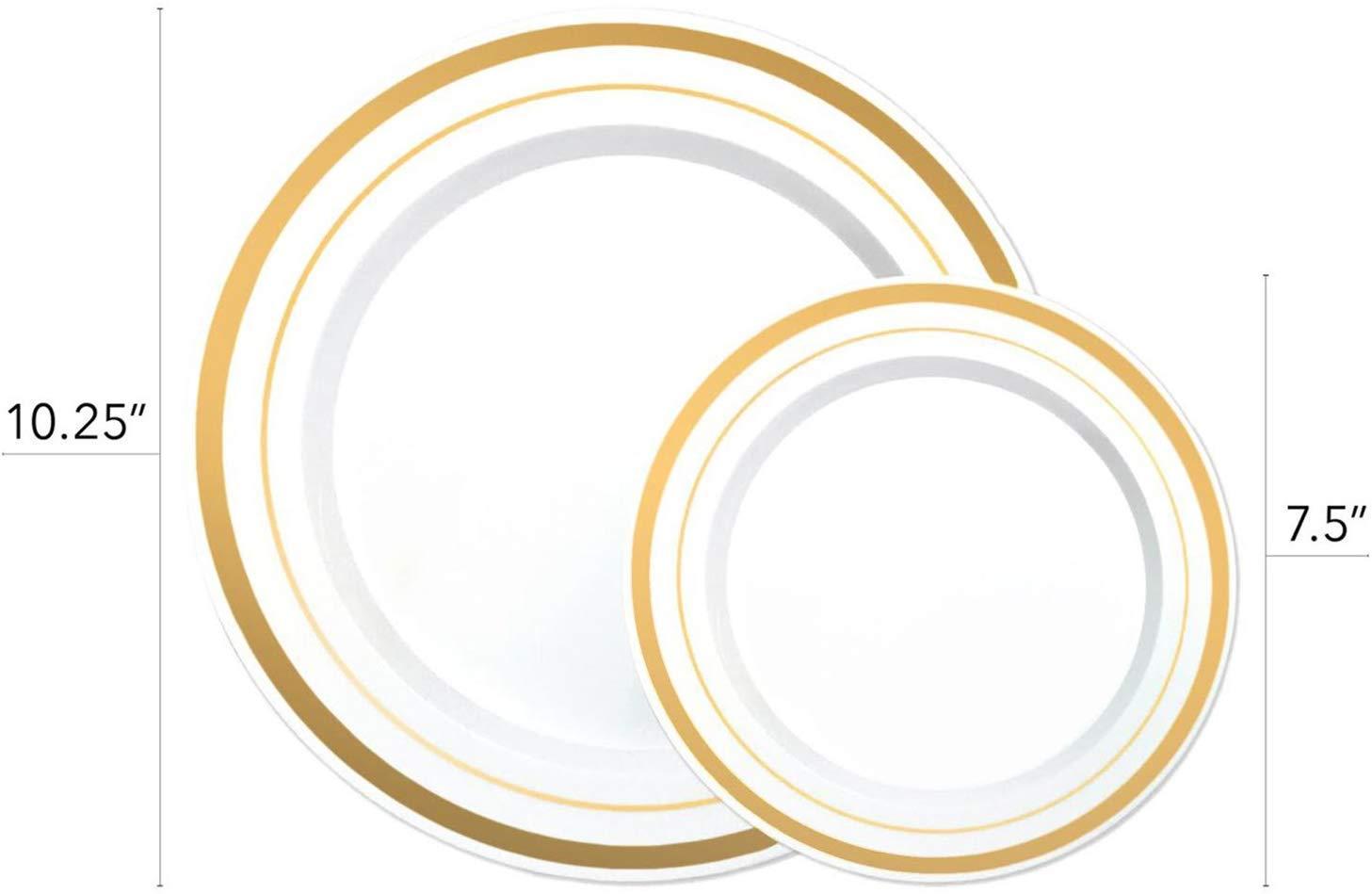 OPULENT Disposal Dinnerware Set, White and Gold Fancy Plastic Plates Disposable with Silverware, Elegant Dinnerware for Weddings, Holiday Party China