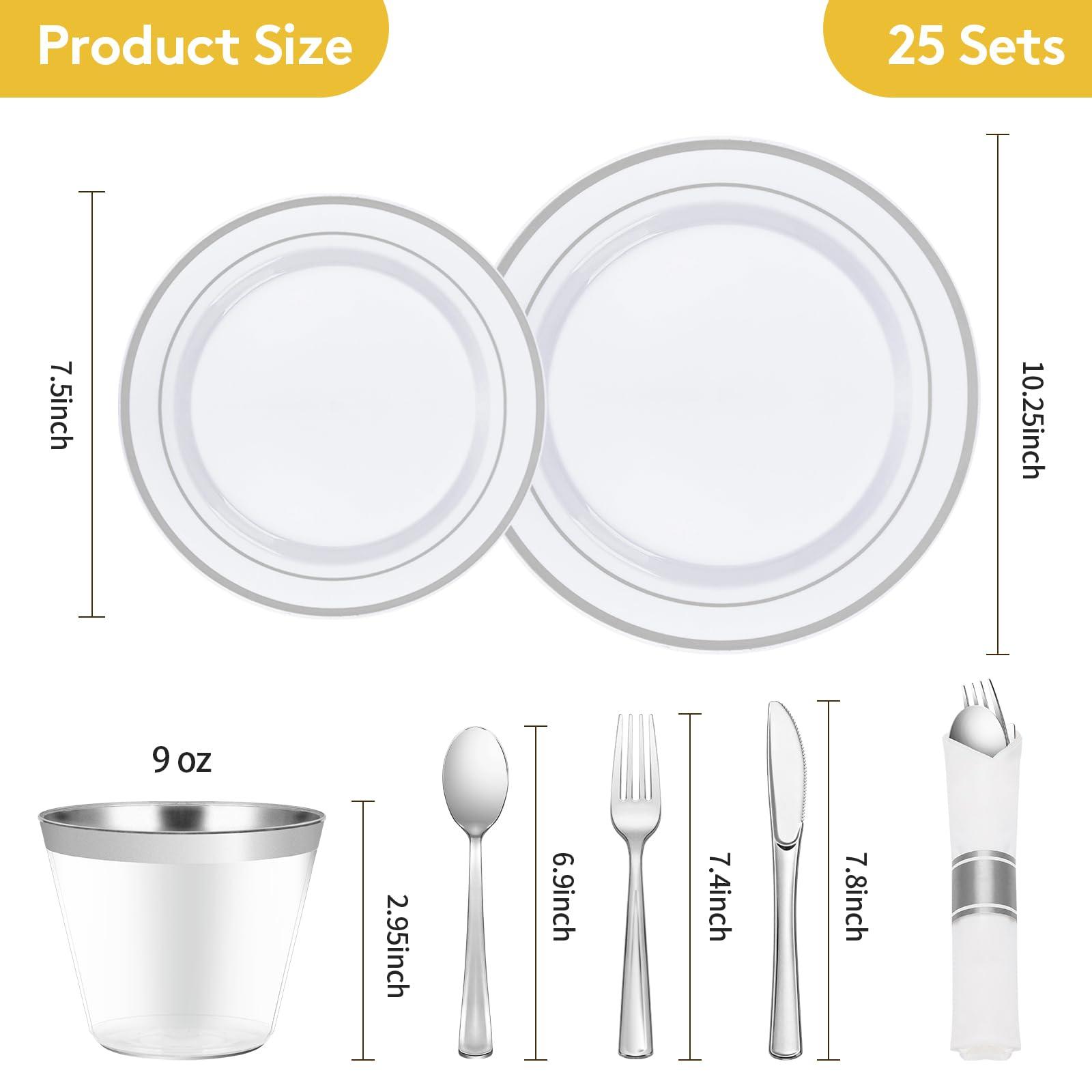 OWENTEK Rose Gold Plastic Dinnerware Set for 50 Guests, Fancy Disposable Plates for Party, Include: 50 Dinner Plates, 50 Dessert Plates, 50 Pre Rolled Napkins with Silverware, 50 Cups