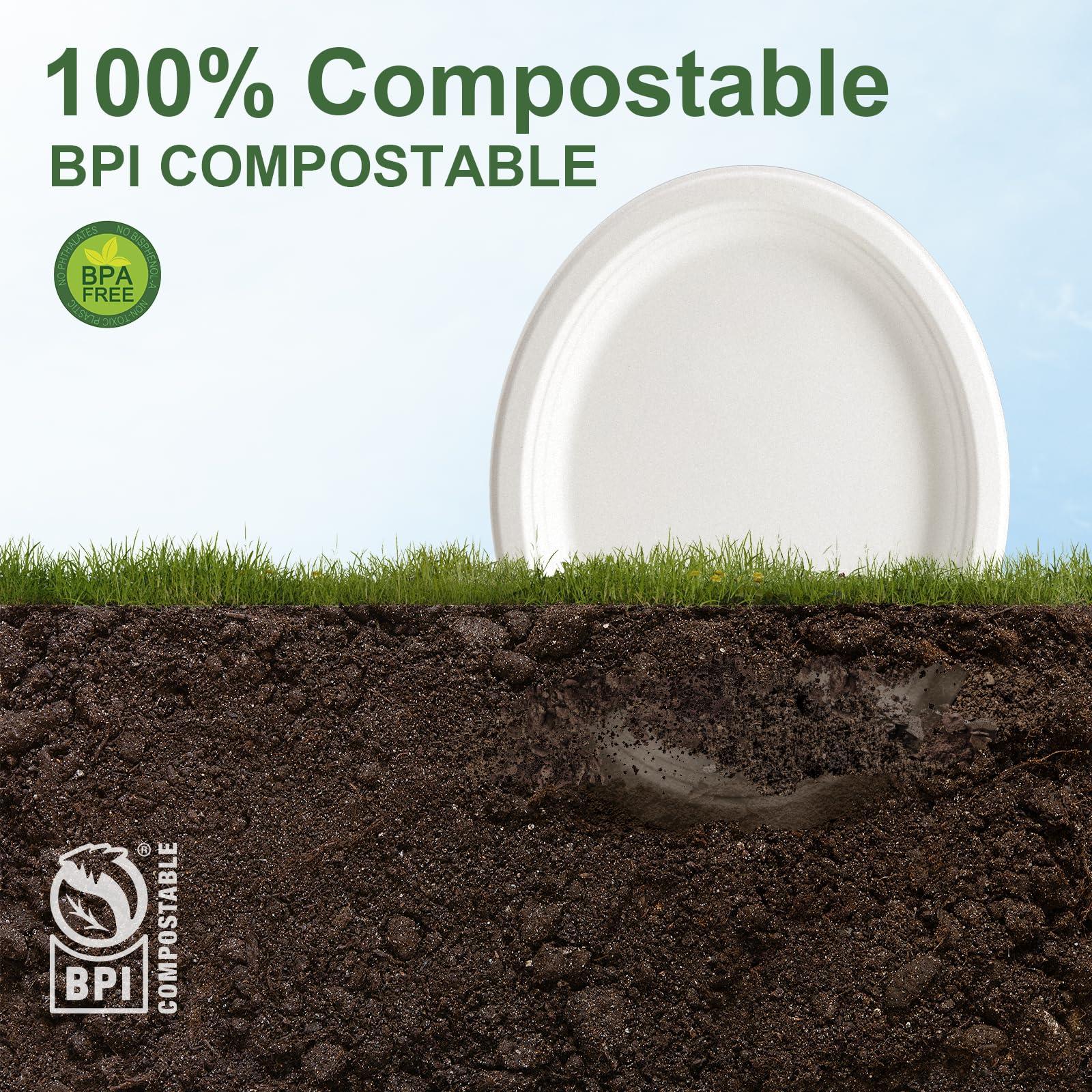 OWENTEK 10 inch paper plates are made from sustainable sugarcane fibers, ensuring that they are naturally decomposing and compostable plates.