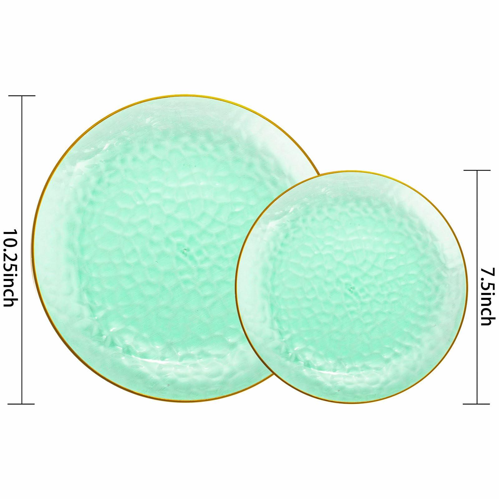 OWENTEK Green Plastic Plates, Hammered Clear and Gold Disposable Plates Include 30 Dessert Platos, 30 Dinner Platos for St. Patrick's Day