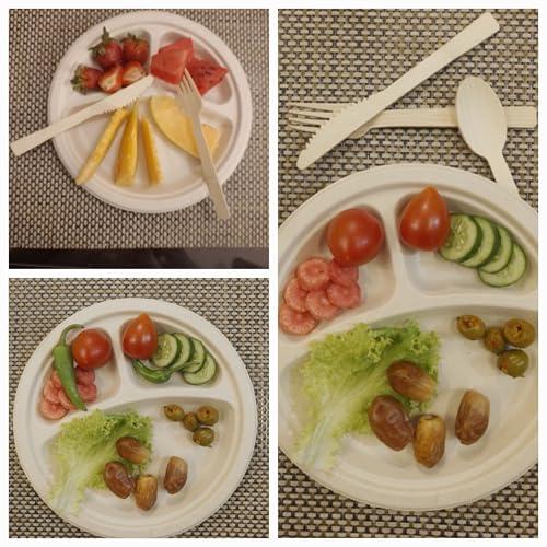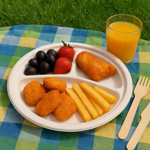 OWENTEK Biodegradable 10 InchPlant Fiber Plates. Bulk Great for Lunch, Dinner Parties, Potlucks. Disposable Bamboo Fiber Dinnerware,100% Compostable Paper Alternative. Sturdy, Soakproof, Microwave Safe