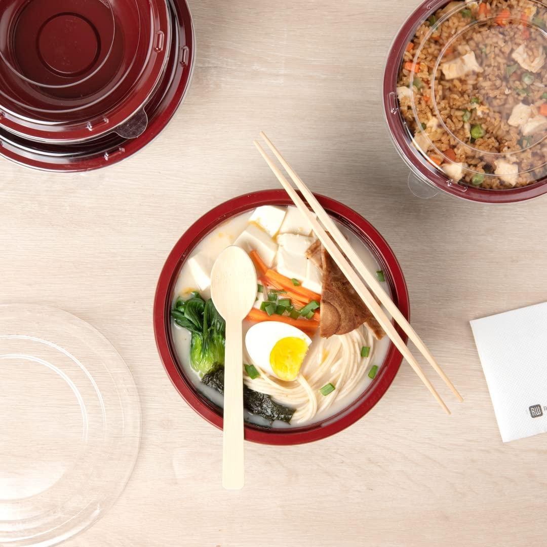 With a chic round design, these disposable bowls sport a black exterior with a red interior to instantly add an Asian-inspired flair to food presentation. Serve in style!