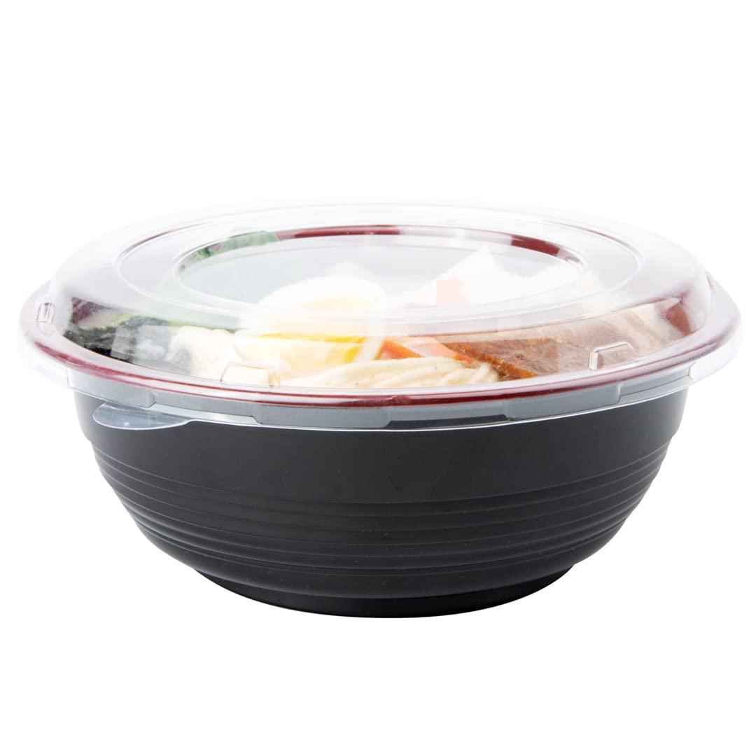 OWENTEK Disposable Plastic Lunch Box,Food Containers Salad Bowls - Lids Included, Microwavable, Black And Red Plastic To Go Bowls, Asian Inspired, Perfect For Picnics Party Restaurante