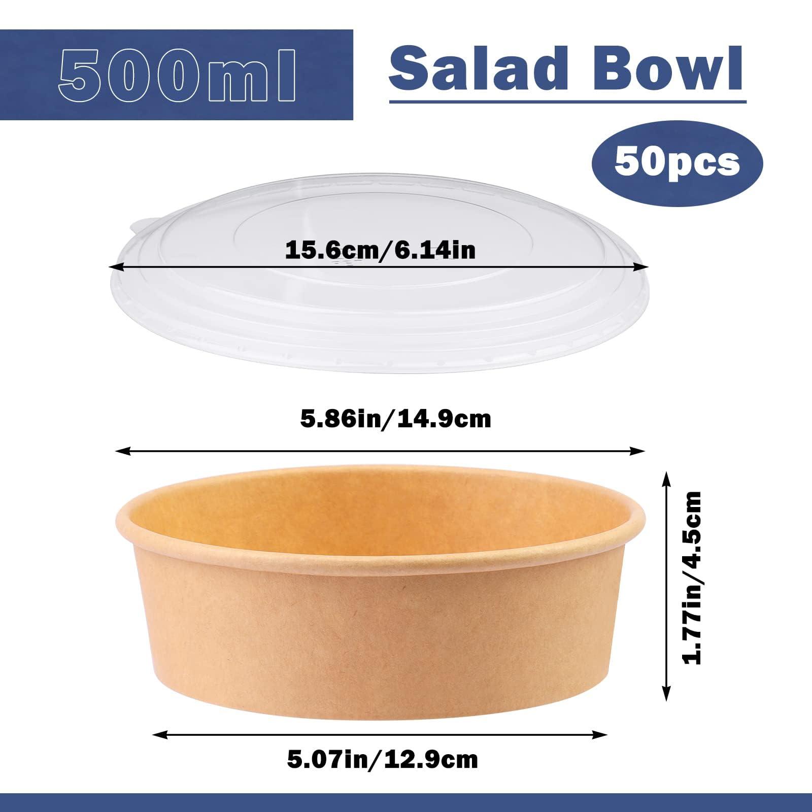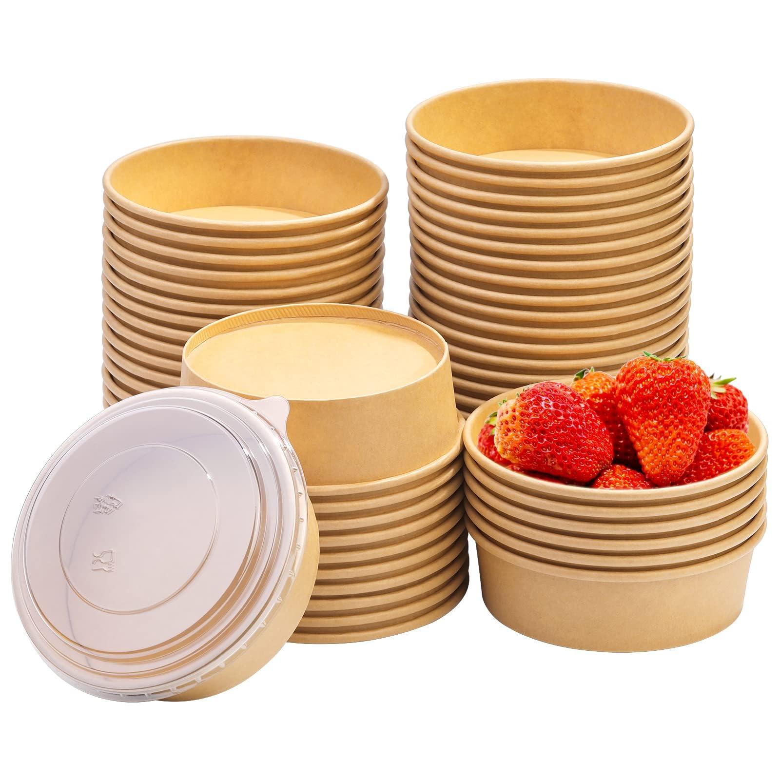 OWENTEK Kraft Paper Bowls with Lid, Disposable Salad Bowls with Lid, Disposable Meal Prep Containers, Round Shape Kraft Food Containers for BBQ, Gatherings and Parties