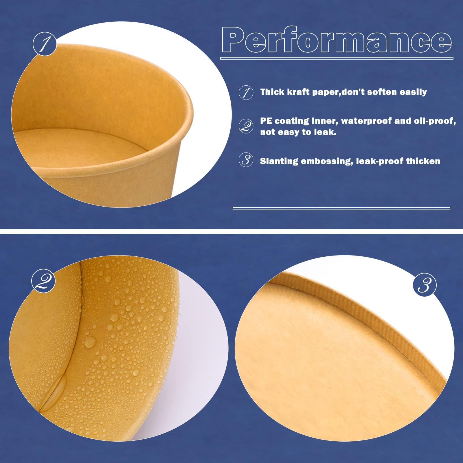 Disposable Food Containers 750 ML size can meet your daily needs, round shape kraft paper food cups can store chicken, rice and vegetables. It is also very suitable for pasta and salads. very suitable for BBQ, Gatherings and Parties