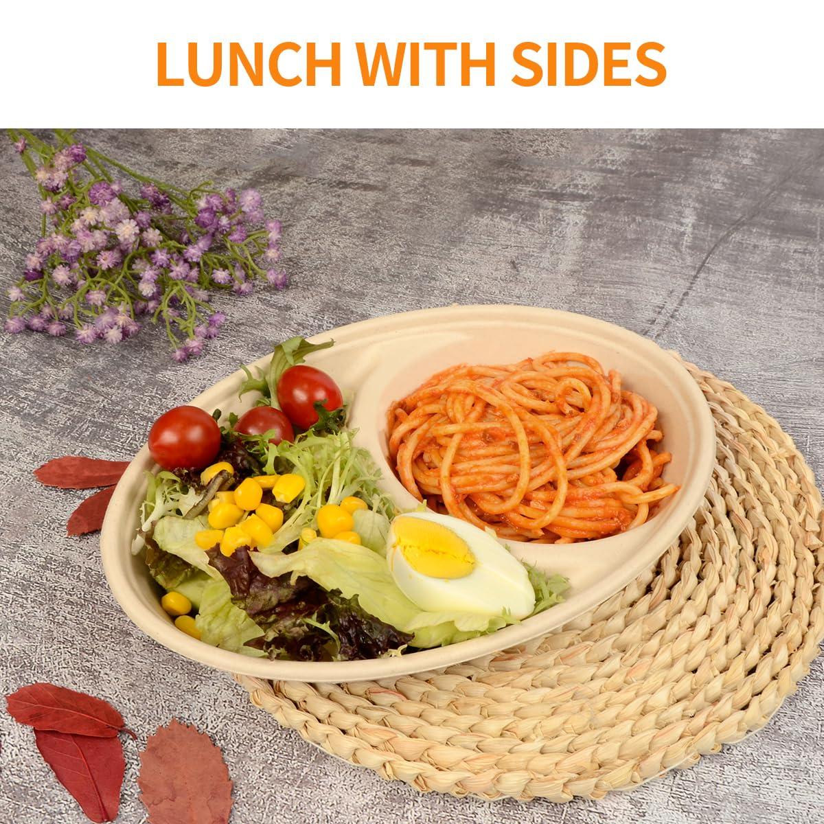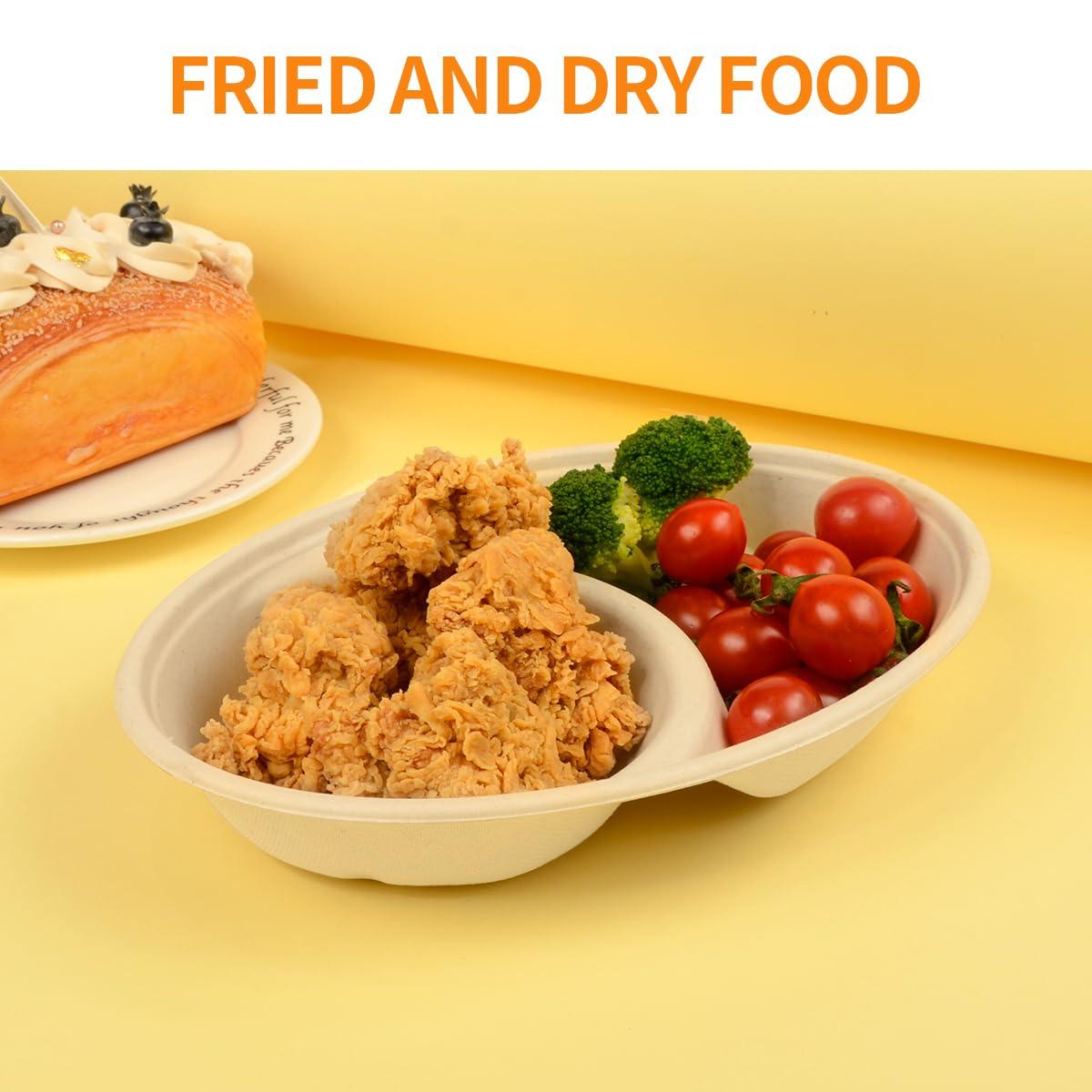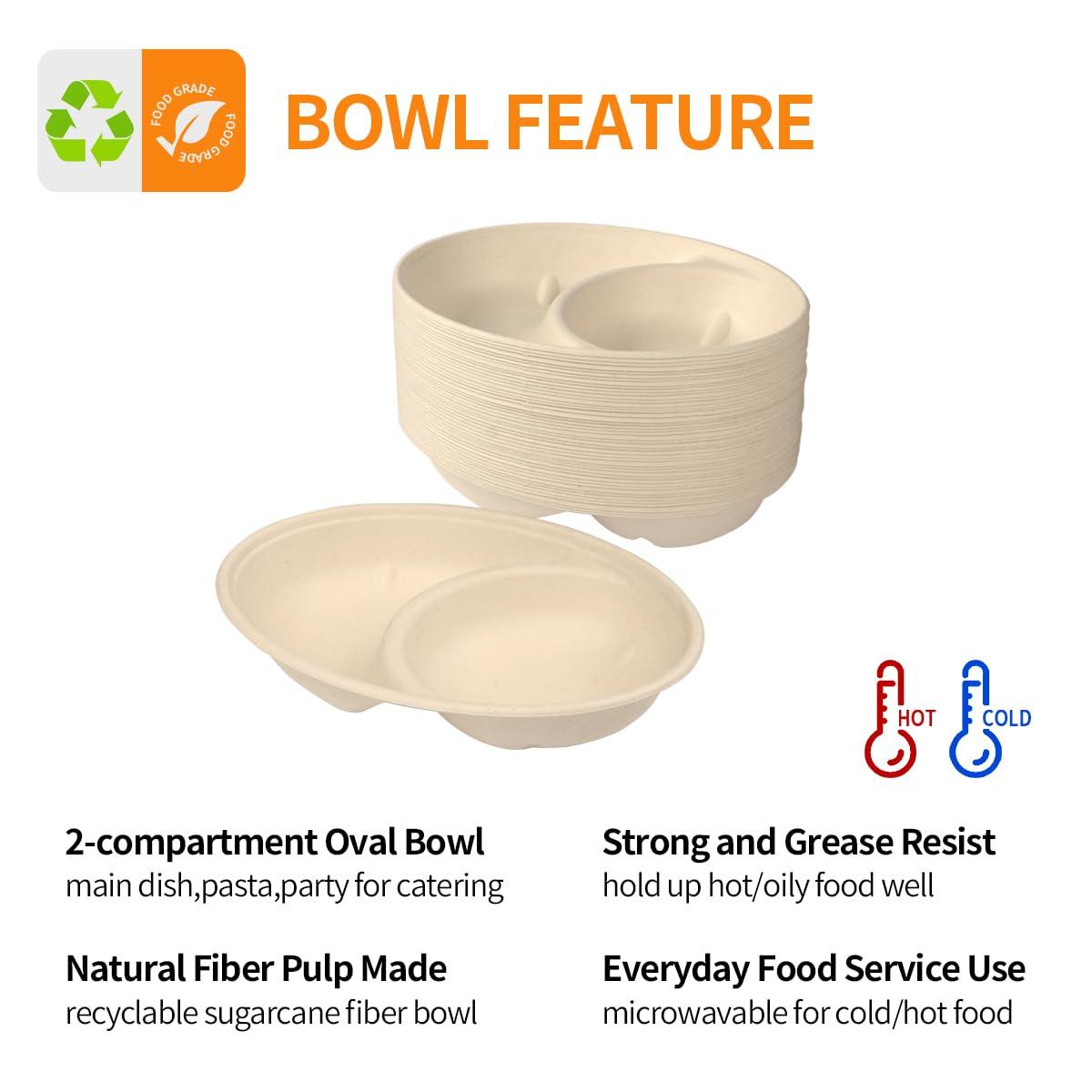 Bagasse product has extra sturdiness comparing to the paper products, prevents bowls from bending when serving full bowl of food; the ultra thick texture has quite strong soak-proof feature, can serve fried food without getting soggy