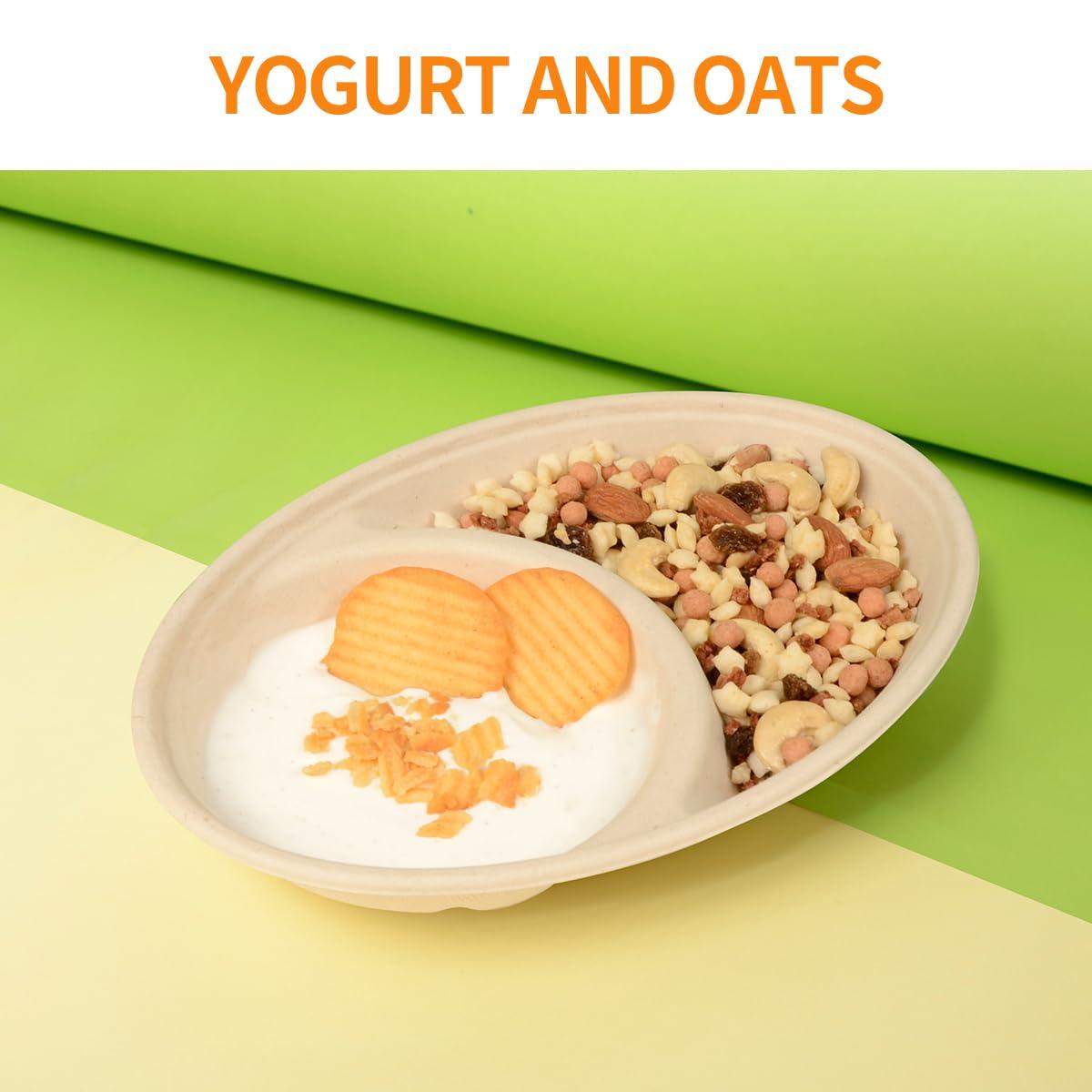 OWENTEK Disposable Paper Bowls, Microwavable Disposable Long Oval Bowls Serving Nacho, Burrito, Salad, Baked Potato, Chips and Cheese for Party Restaurant