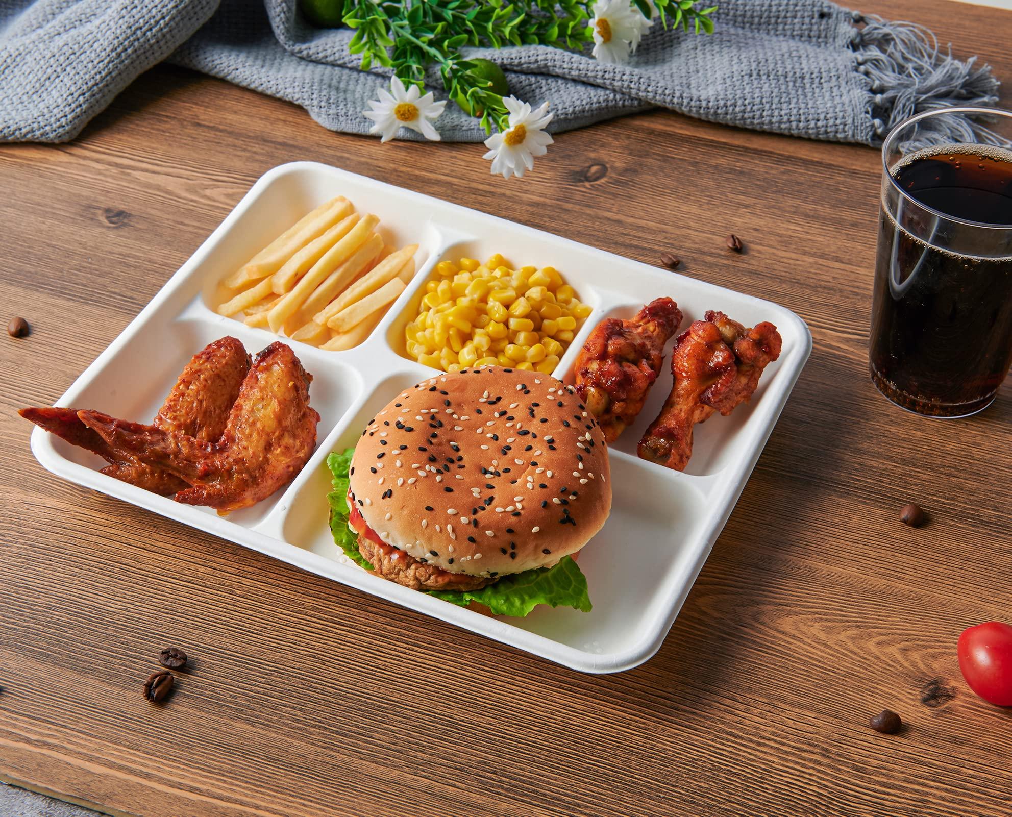 The Compostable Food Tray makes a Great Choice for Restaurants, Food Trucks, To-go Orders, Food Service, and Family events, Schools, Restaurants, Office lunches,